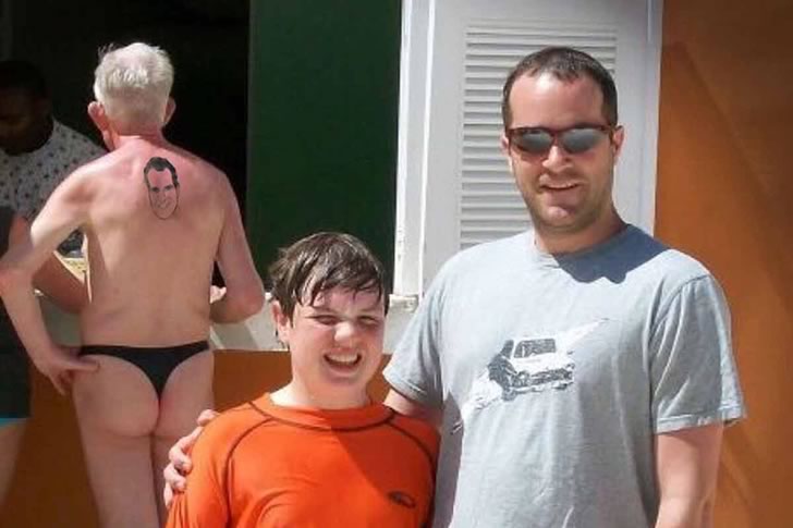 Der freizügige Speedo ist jedoch nicht das einzig Merkwürdige an diesem Foto. Wir sind auch neugierig auf den Grund für das auffällige Richard-Nixon-Rückentattoo. Wenn der Mann ein großer Fan des ehemaligen Präsidenten ist, warum lässt er sich das Tattoo an einer Stelle stechen, wo er es selbst nicht einmal sehen kann?