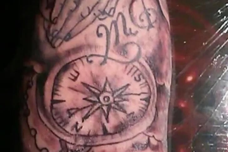 Kompassinstrumente sollen einen eigentlich durch die Reise des Lebens führen, aber dieses Tattoo sieht aus, als wäre der Träger hoffnungslos verloren. Die Kompassnadel zeigt in mehrere Richtungen, und die Buchstaben für Norden, Osten, Süden und Westen sind durcheinander oder stehen auf dem Kopf. Statt Navigation vermittelt es vor allem Verwirrung.