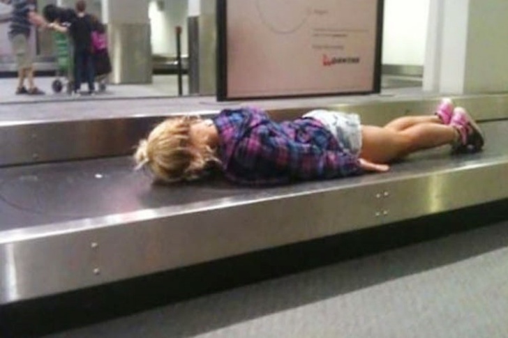 Reisen kann unglaublich anstrengend sein, und am Flughafen gibt es nur begrenzt Möglichkeiten, sich die Zeit zu vertreiben – es sei denn, man ist ein Kind, für das Verstecken spielen noch völlig normal ist.