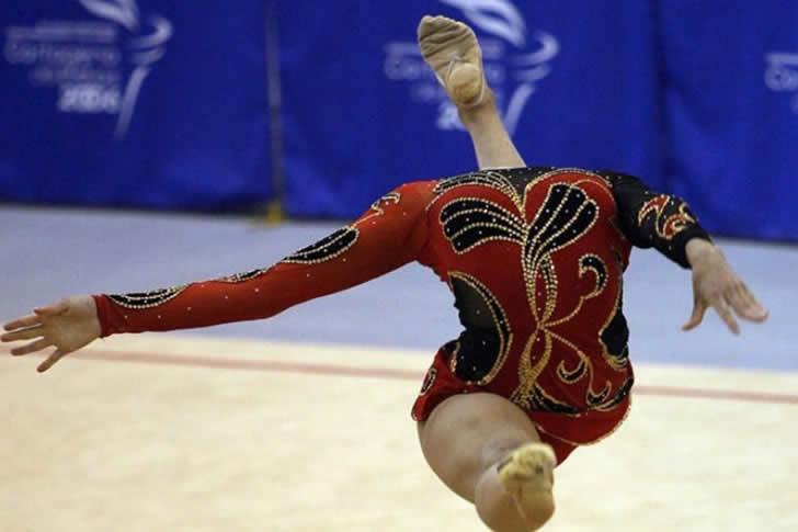 Turner faszinieren das Publikum mit atemberaubenden Saltos und Drehungen, die ihre erstaunliche Flexibilität demonstrieren. Das Geheimnis jahrelangen Trainings scheint in diesem Foto enthüllt zu werden. Der Fotograf hat im perfekten Moment abgedrückt und ein Bild geschaffen, das aussieht, als wäre es ein kopfloser Turner. Vielleicht steckt hinter internationalem Erfolg auch so viel Humor.