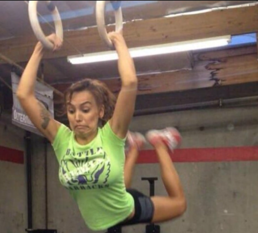 Das Gesicht dieser Frau spricht Bände: “Warum habe ich mich nur auf diese Ringe gewagt?!” Während Profis elegant an den Turnringen schwingen, erinnert ihre verkrampfte Haltung eher an eine Katze, die sich an einem Vorhang festklammert. Jeder Muskel ihres Körpers schreit: “Hilfe!”