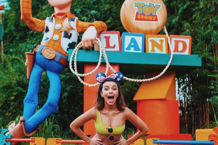 Diese junge Frau sieht absolut begeistert aus, im Toy Land zu sein, und hat sogar ihr Outfit auf die Hauptfigur ausToy Storyabgestimmt. Man fragt sich unweigerlich, wie oft sie wohl Woody und die Bande in ihrer Kindheit gesehen haben muss – ihre Liebe zum Film strahlt wirklich in diesem verspielten, thematischen Outfit durch.