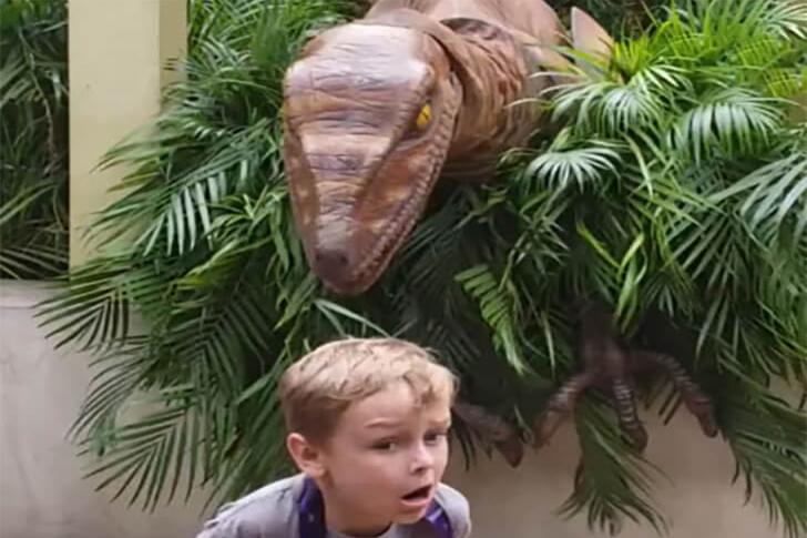 Nach der Pose dieses kleinen Kerls zu urteilen, stellt er sich entweder vor, wie er reagieren würde, wenn er dem Indominus Rex gegenüberstünde … oder er zeigt einfach beeindruckende schauspielerische Fähigkeiten! So oder so beschert er uns einen unvergesslichen Moment – und beweist, dass selbst die kleinsten Besucher einen großen Eindruck hinterlassen können.