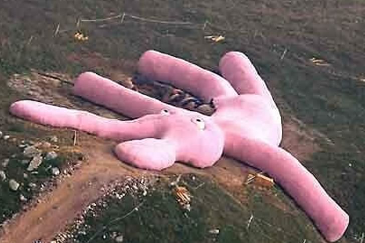 In 2005, a drone captured the first aerial image of a strange and enormous pink bunny lying in the hills of Northern Italy’s Piedmont region. This giant plush art piece instantly sparked international curiosity due to its size and surreal appearance. From the sky, its full form could finally be appreciated, turning a bizarre installation into an iconic global sensation. Though odd at first glance, the bunny captivated those who saw it.