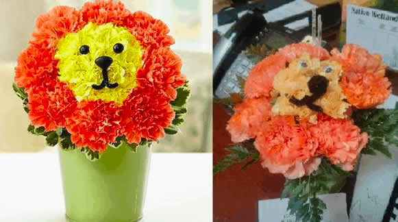 Les achats en ligne peuvent parfois engendrer une grande déception lorsque le colis arrive enfin. Il n’est pas rare que les clients reçoivent un produit qui ne ressemble en rien aux photos du site web. Cet arrangement floral de la Saint-Valentin en est un parfait exemple. Le bouquet en forme de lion avait l’air majestueux en ligne, mais en vrai, il ressemble à un caniche triste et en train de fondre. Ce n’est certainement pas le grand geste attendu !