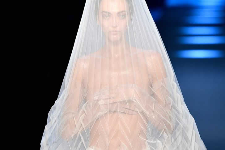 No tenemos ni idea de cómo funcionaría este vestido para cualquier novia que se case, especialmente durante el invierno. ¡Definitivamente un estilo de verano para novias que se casan en una discoteca! Quizás los diseñadores rompieron accidentalmente la parte superior justo antes del desfile y la enviaron a la pasarela con esta lamentable excusa de “vestido”.
