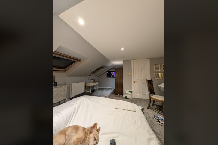 #21 Esta TV que está demasiado lejos de la cama y oscurecida por el armario @ un hotel de Escocia