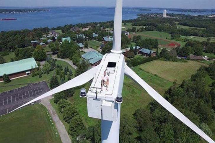 No estamos seguros de si este hombre subió solo para una selfie o si estaba allí para hacer mantenimiento, pero les puso a otros metas serias de selfies. Independientemente de por qué subió, esta es una hermosa toma de dron que merecía un lugar en nuestra lista. De pie a cientos de pies del suelo, con solo el cielo y las palas a su alrededor, este hombre se ve audaz y extrañamente tranquilo. El contraste entre la escala humana y la tecnología imponente hace que esta imagen sea inolvidable.