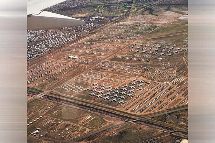 Aquí descansan más de 4000 aviones militares de todo tipo. Es el centro de almacenamiento más grande del mundo y su historia se remonta al final de la Segunda Guerra Mundial.
