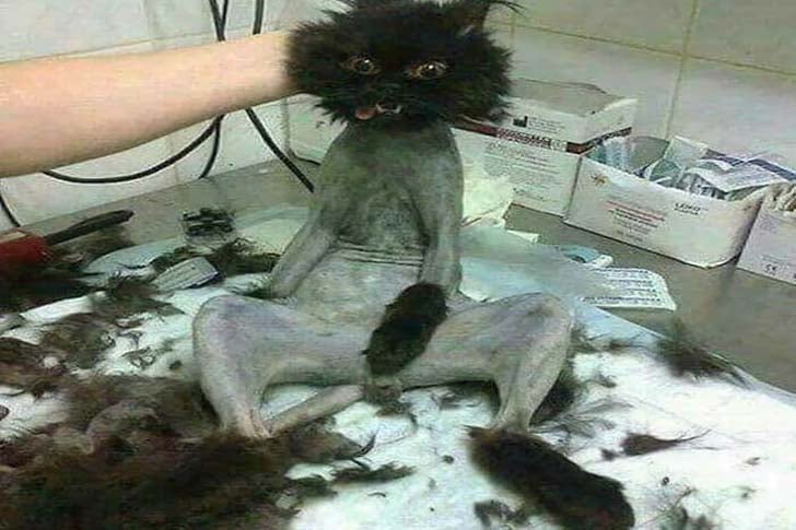 En realidad, no hay ninguna razón lógica para que la gente le tenga miedo a los gatos negros. Después de todo, es una superstición tonta sin fundamento. Pero si ves a este gato, quizás entiendas ese miedo. No solo es uno de los cortes de pelo más locos que alguien le puede hacer a un animal, sino que es terrorífico. Aunque no sé quién está más asustado, ¿el gato o todas las miradas que lo observan?