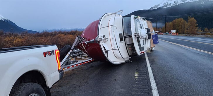 A veces, los barcos simplemente se cansan de flotar. Tomemos este, por ejemplo, siendo remolcado por una camioneta, ¡pero con un giro, literalmente! El barco, en un acto desafiante de inconformidad náutica, ha decidido echarse una siesta de costado. Mientras “navega” por la carretera, de lado, presenta una escena que es en parte hilarante, en parte desconcertante: ¿está practicando para una vida en el circo o simplemente se está haciendo el difícil de remolcar?