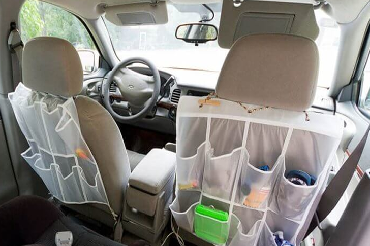 By hanging these organizers off the back of your car seats, you’ll instantly have storage space for you to organize all of your things. And they won’t slide around in the back anymore!