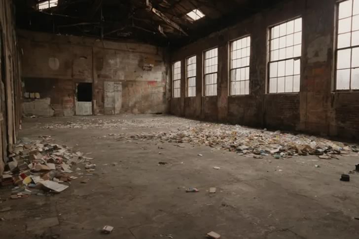 Mr. Johnson found a faded tag half-buried under rubble. “Looks like this place hasn’t been touched in years,” he said. Alex kicked at another pile, revealing an old, rusted dog bowl. “You don’t think…?” he trailed off, eyes wide. Sunlight filtered through cracked windows, casting eerie shadows. The warehouse didn’t just look abandoned—it felt like it was hiding something.