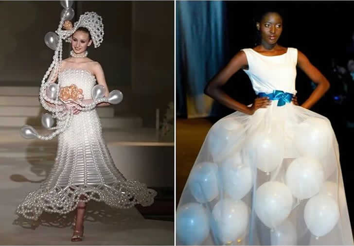 Claro, essa ideia ganha pontos pela criatividade e talvez até pelo conforto, mas parece mais pronta para um concurso de fantasias do que para um corredor de casamento. Embora seja memorável, recomendamos guardar os balões para as decorações da recepção – não para o seu vestido.