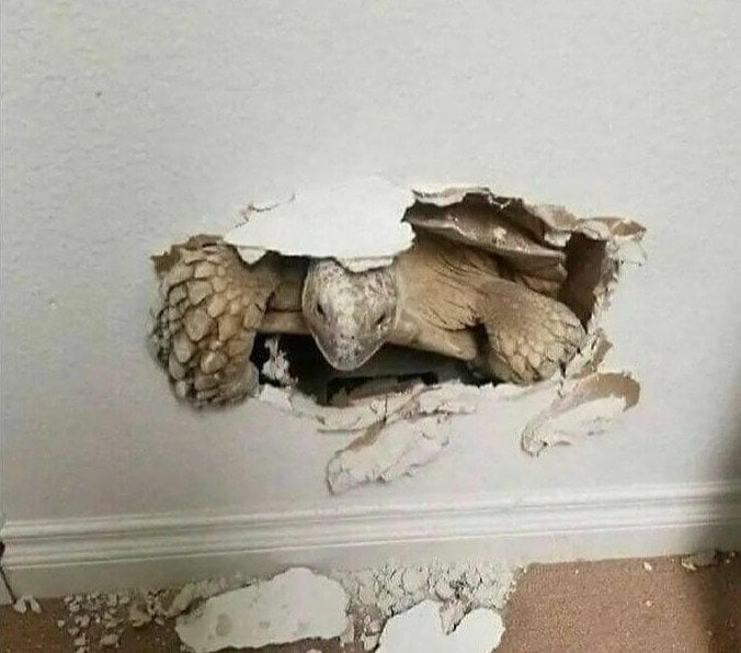 Les tortues ont toujours été connues pour leur rythme lent et régulier. Mais imaginez en voir une en pleine évasion, essayant de s’échapper de ses limites, comme une vraie Tortue Ninja ! Cette tortue n’a pas très bien réfléchi à son plan d’évasion, car elle s’est fait prendre en flagrant délit. Qui sait, peut-être essayait-elle juste de sauver le monde (ou de trouver de la pizza).