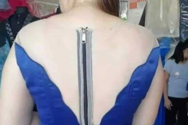 Le tissu bleu audacieux et les ornements scintillants font de leur mieux pour sauver le look, mais cette fermeture éclair domine toute la tenue. Parfois, les choix de design subtils sont les meilleurs, et c’est un parfait rappel que tous les détails fonctionnels n’ont pas besoin d’être mis en avant.