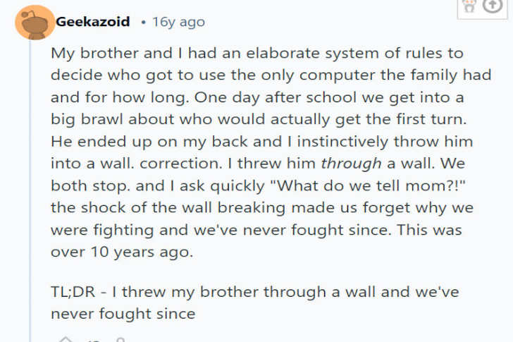 40 Hilarious Pics That Prove Growing Up With Siblings Is A Survival Sport. #38 Advertisements Geekazoid Advertisements PREVNEXT PAGE Advertisements PREV NEXT PAGE