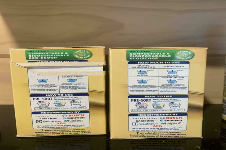 #23 La moitié des instructions de dosage de la lessive Persil est imprimée sur la bande à arracher pour ouvrir la boîte