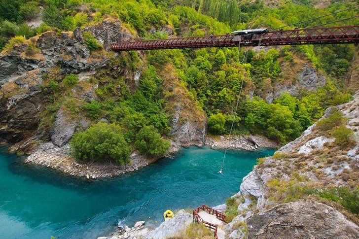 Situé dans les gorges de Kawarau, sur l’île du Sud de la Nouvelle-Zélande, le pont suspendu de Kawarau Gorge est célèbre pour avoir été le premier site commercial de saut à l’élastique au monde. Ce pont est une voie de passage essentielle pour les coureurs, les cyclistes et les marcheurs qui empruntent le Queenstown Trail pour traverser la rivière Kawarau.