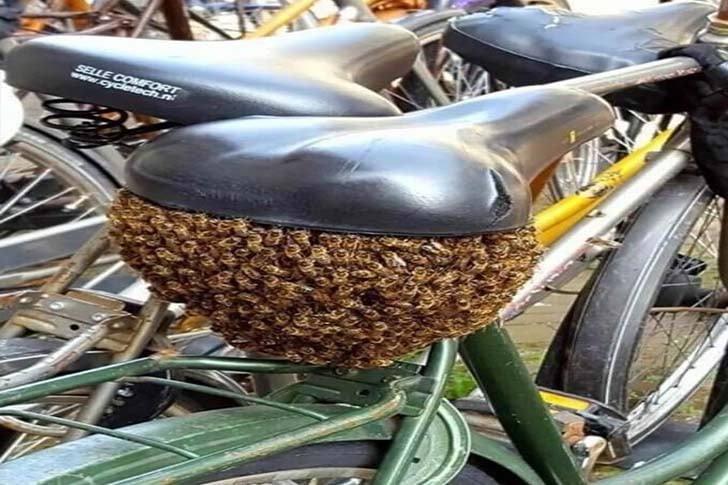 On ne trouvera nulle part au monde une selle plus effrayante que celle-ci. Imaginez que vous vous asseyez sur une selle de vélo sans vous rendre compte qu’il s’agit d’un énorme nid d’abeilles… Ce serait certainement le trajet le plus court de votre vie. Malgré l’horreur que cette photo évoque, on ne peut s’empêcher d’être un peu impressionné par la structure de ce nid, n’est-ce pas ?