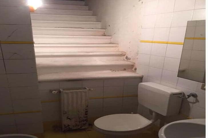 Il n’y a rien de plus étrange qu’une vieille salle de bain préfabriquée et cet escalier mystérieux et inexplicable à l’intérieur. Pour aggraver les choses, non seulement cet escalier est terriblement délabré, mais il semble aussi mener vers un gouffre sans fond. Où cet escalier menait-il autrefois, et pourquoi quelqu’un voudrait-il construire un escalier juste à côté des toilettes ? Il y a beaucoup de questions soulevées par cette photo étrange, et probablement aucune réponse ne sera trouvée.