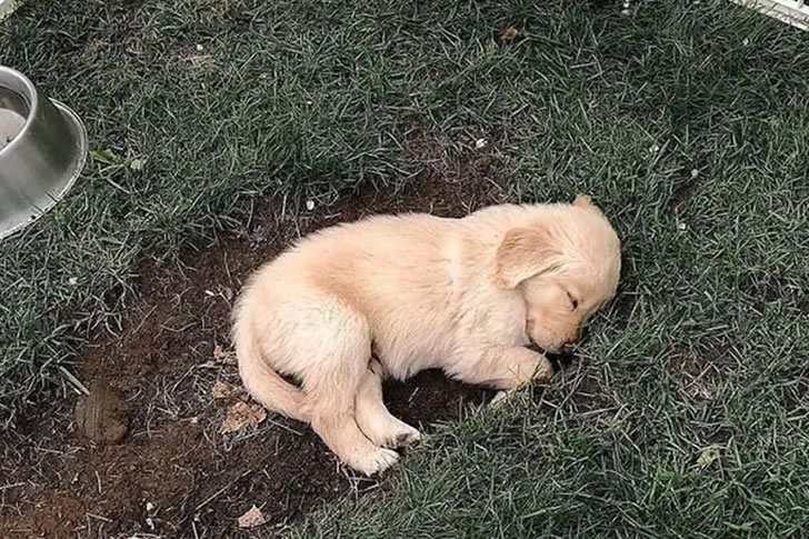 Being a puppy isn’t all fun and games—it’s a full-time job! This little guy gave his all to digging a hole in the backyard, but before long, exhaustion took over. He didn’t even make it back inside before collapsing in the grass for an emergency nap. Clearly, he lives by the rule: work hard, nap harder.
