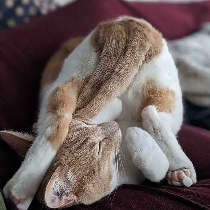 Recentemente si sente parlare di “yoga con i cuccioli”, ma forse esiste anche lo “yoga con i gatti”. Questo gatto sembra fare yoga in una posa incredibilmente flessibile… ma in realtà sta dormendo! A questo punto, è proprio un maestro.