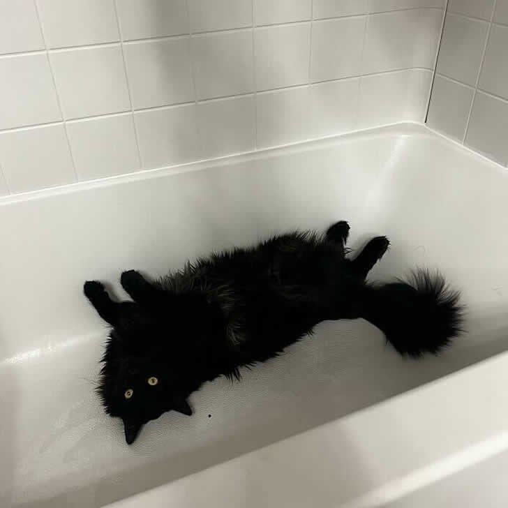 Sembra che non tutti i gatti odino l’acqua. Questo gatto si gode la vasca da bagno come “il suo spazio di relax personale”. L’unica condizione è… “che non ci sia acqua”!