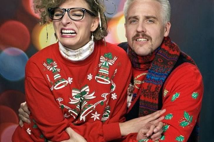 This couple set out to proudly display their finest ugly Christmas sweaters, but something clearly went off the rails. We’re honestly baffled by what’s happening in this photo. One possible explanation? She might have accidentally sat on something suspicious—maybe a rogue Brussels sprout that decided to crash the holiday fun. It’s bizarre, it’s hilarious, and it’s peak festive confusion.