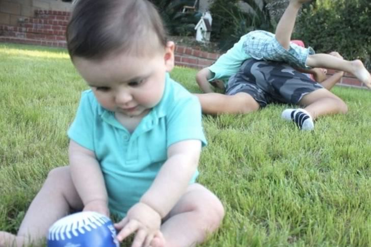 The baby, blissfully unaware of the chaos behind him, may just grow up to be a baseball legend if the family’s humor is any clue. They’ve even nicknamed him Babe Ruth, since this picture unintentionally combined baseball and brawling. It’s a hilarious snapshot of family life where nothing ever really goes as planned.