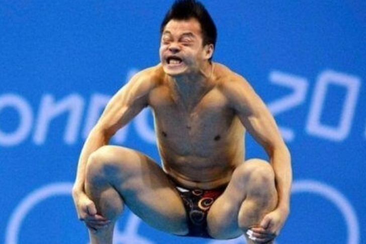 This swimmer’s face says it all – that intense grimace could mean one of two things: either he’s perfecting the world’s most dramatic cannonball, or he’s discovering that pre-race jitters and breakfast burritos don’t mix. The sheer full-body tension suggests he’s either about to unleash a gold-medal splash… or urgently rediscover his lunch.