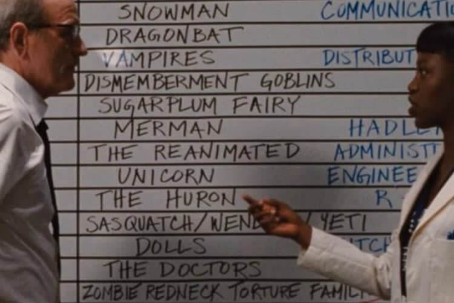 The Cabin in the Woods, a 2012 American horror-comedy, earned rave reviews and quickly turned into a cult classic. Despite its mix of scares and laughs, one scene gets paused for reasons beyond the usual thrills or giggles. In it, scientists scramble to predict the main characters’ fate, with a whiteboard displaying a list of creatures they control.