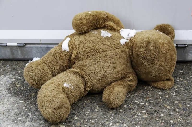 Um item em particular chamou sua atenção – um pequeno ursinho de pelúcia, gasto e rasgado, mas ainda inteiro. Seu tecido estava desbotado, suas costuras soltas.