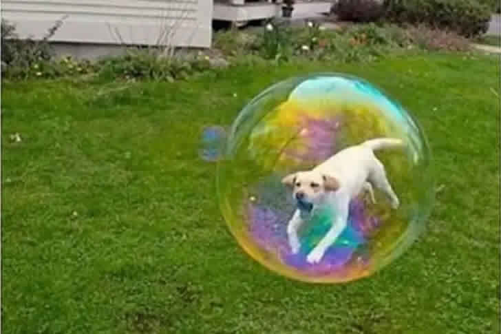 Cachorro Dentro da Bolha de Sabão