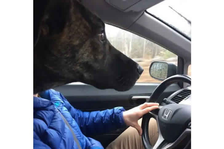 Esta foto nos ensina sobre a diversão e o espanto que um timing perfeito pode trazer. O humor de um cão que parece estar dirigindo cativa o coração de quem vê e arranca um sorriso. É surpreendente como a paisagem familiar do interior de um carro pode se tornar um momento tão engraçado. Esta foto, capturada no momento perfeito, nos faz perceber o humor e a surpresa escondidos no cotidiano.