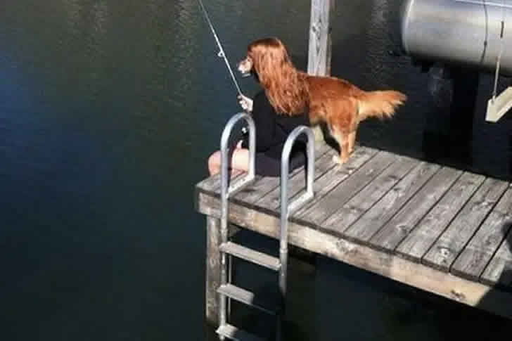 Esta foto, tirada em um píer, é impressionante pelo timing perfeito que nos faz olhar duas vezes. Enquanto uma mulher está sentada com uma vara de pescar, o rosto de um cachorro ao lado dela se alinha perfeitamente com sua cabeça, capturando um momento como se o cachorro estivesse pescando. A superfície calma da água e o píer de madeira criam uma atmosfera idílica, enquanto a expressão séria do cachorro e a vara de pescar tecem uma ilusão humorística que induz surpresa e riso. Este timing fortuito é uma daquelas imagens mágicas que transformam um momento tranquilo de pesca em algo especial.