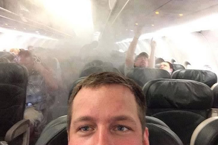 The boldness of snapping a selfie during such an unusual situation showcases a fearless approach to capturing the moment. The dim lighting and foggy conditions add to the intensity, turning a routine flight into a scene of high drama. This photo stands out as a testament to how some individuals embrace extreme circumstances to create unforgettable, adrenaline-pumping images.