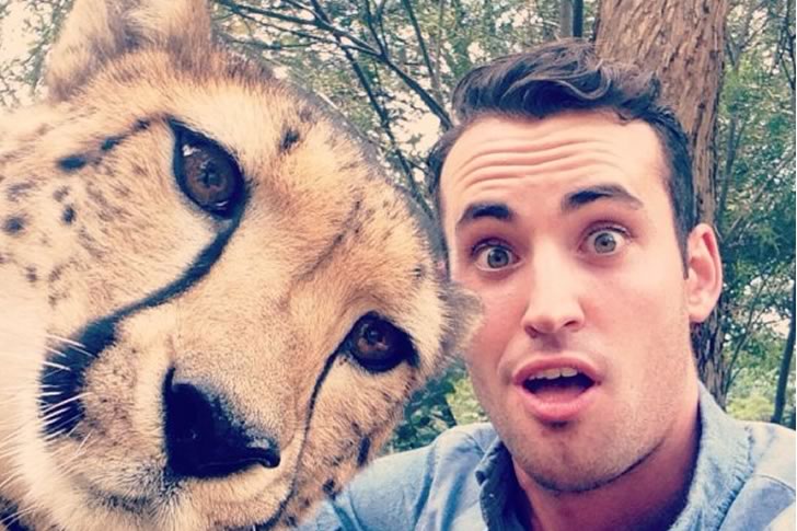 The bravery of this selfie with a cheetah showcases a daring spirit. The animal’s proximity and his shocked expression create a thrilling contrast, turning a wildlife moment into a bold photograph. This image stands out as an example of pushing boundaries with exotic animals.