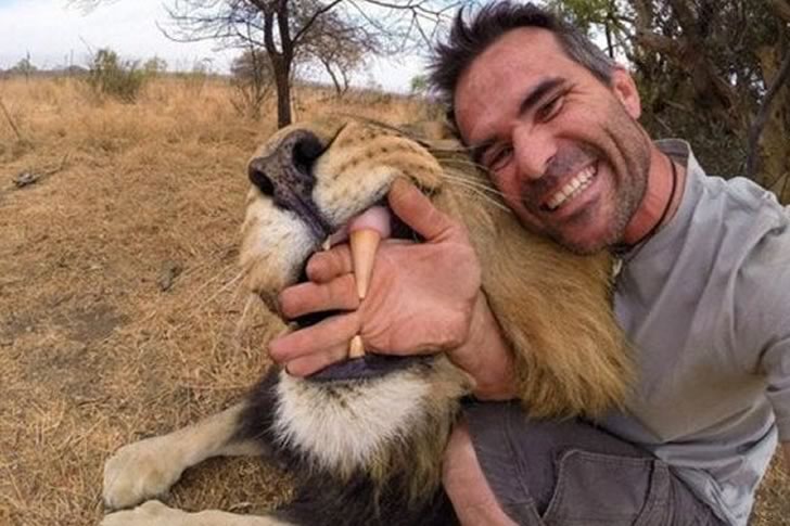 This image pushes the limits of extreme selfies, showcasing an incredible interaction with a powerful animal. The man’s fearless smile and the lion’s open jaws create a thrilling yet comical scene, highlighting the lengths some will go to for a unique shot. It’s a striking example of capturing nature’s majesty in an outrageously bold way.