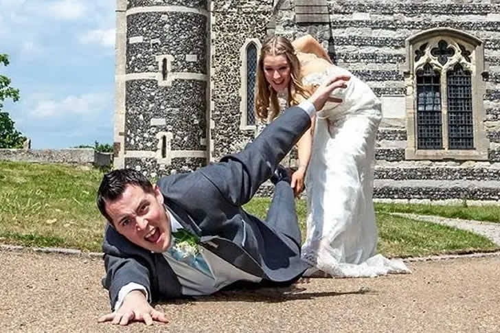Lo vedrete ovunque sui topper per torte, quindi perché non dargli vita? Una foto della sposa che trascina uno sposo riluttante (o di una sposa esitante che viene trasportata) farà sicuramente sorridere i vostri invitati.