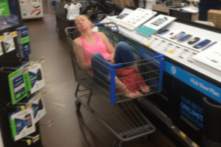 Per alcune persone, Walmart è un posto che offre di tutto, incluso una sorta di cura di sé. Perché tornare a casa prima di fare una piccola pausa? Si può portare tutta la famiglia. Si può portare anche l’anatra domestica. Ci sono abbastanza posti per dormire nei carrelli per tutti.
