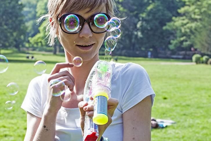 In questa foto con tempismo delizioso, una bolla fluttuante si allinea perfettamente con gli occhiali oversize di una donna, creando l’illusione che le sue lenti si siano trasformate in sfere traslucide. La sua espressione giocosa e il giocattolo per fare le bolle esaltano l’atmosfera stravagante, catturando la gioia spensierata di una giornata di sole al parco. È un momento fugace di meraviglia infantile, congelato nel tempo dalla pura fortuna fotografica e dal tempismo perfetto.