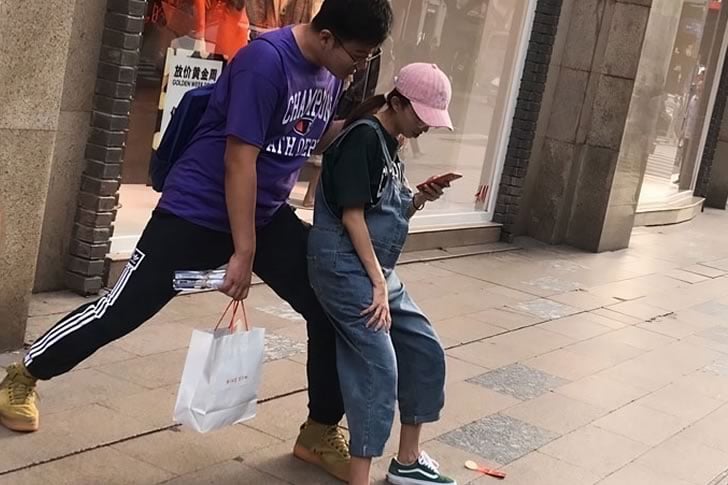Il contrasto tra la pacifica immobilità della donna e la postura intensa, quasi acrobatica dell’uomo, crea un’immagine che è sia divertente che stranamente toccante. Che stia impedendo ad altri di urtarla o semplicemente la stia sostenendo a modo suo, la foto cattura un atto spontaneo di cura in pubblico. Momenti come questi ci ricordano che umorismo e gentilezza possono andare di pari passo — anche se significa sforzarsi in pubblico, letteralmente.