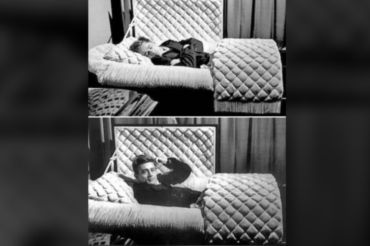 #7 James Dean in posa all’interno di una bara