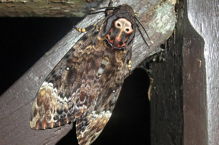 La sfingide testa di morto non ha solo un disegno a forma di teschio sulla schiena, ma anche un metodo di sopravvivenza ingegnosamente criminale. Invade gli alveari per rubare il miele, eppure in qualche modo non viene punta a morte. Come? Mimando l’odore delle api, inganna l’alveare facendogli credere di essere una di loro.