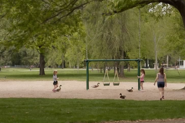 Plus tard, Jamie emmena Emily dans son parc préféré – celui rempli de rires d’enfants et de souvenirs père-fille. Elles coururent vers les balançoires, rigolèrent en descendant les toboggans, et s’arrêtèrent à l’étang pour jeter des miettes de pain aux canards. Tout semblait à la fois nostalgique et complètement nouveau.