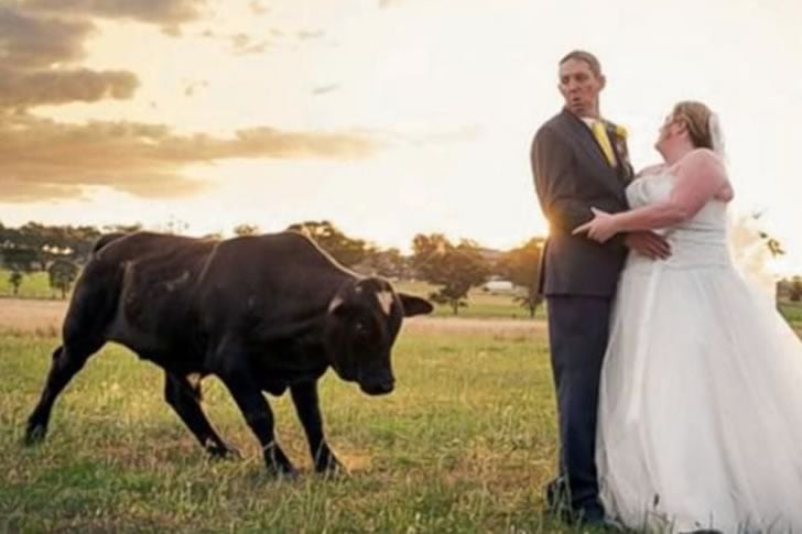Il grande giorno di Brian e Rebecca Pepper ha preso una piega inaspettata durante il loro pittoresco matrimonio in campagna a Tamworth, in Australia. Mentre posavano in un campo per quella che doveva essere una romantica foto post-cerimonia, un toro infuriato ha deciso che non gradiva gli invitati al matrimonio che sconfinavano nel suo territorio. Il terrore sul volto di Brian mentre caricava diceva tutto: il romanticismo ha incontrato la realtà molto velocemente.