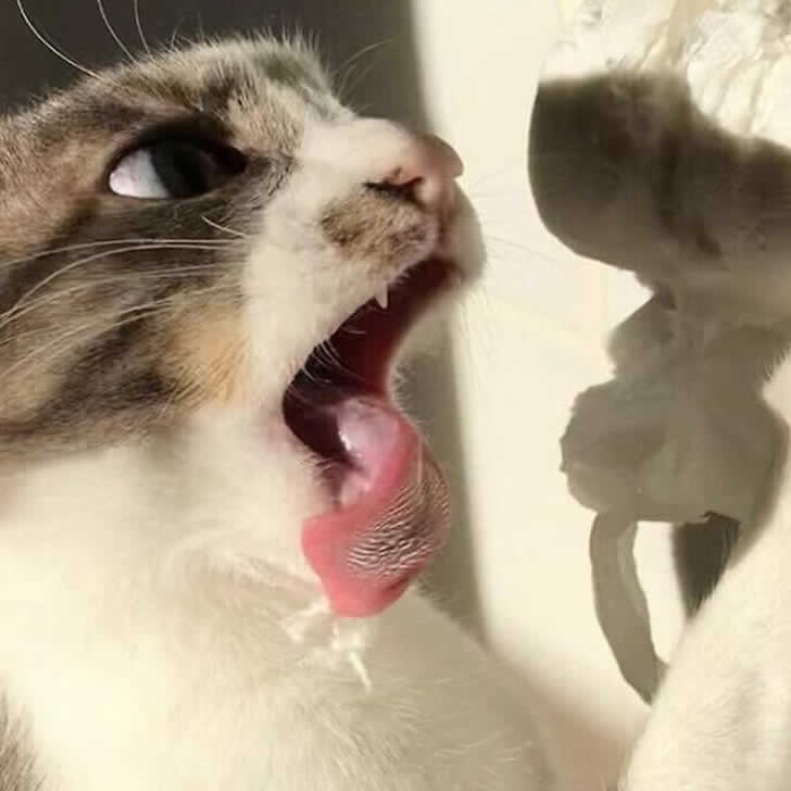Il suo obiettivo è chiaro: distruggere completamente la carta igienica e far sapere alla famiglia e al mondo intero “Sono io il capo”. La sua tenacia e passione mostrano chiaramente il lato stravagante dei gatti.