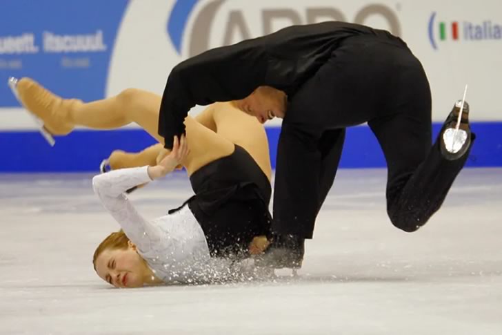 Cosa succede quando una ballerina che fa affidamento sul suo senso del ritmo si ritrova improvvisamente su una lastra di ghiaccio scivolosa con delle lame metalliche sotto i piedi? Esatto: un capitombolo spettacolare!