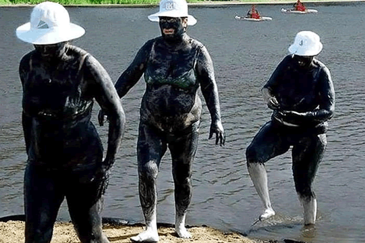 Non sappiamo quando sia stata scattata la foto, ma cosa potrebbero aver messo queste donne sulla loro pelle per farla sembrare così nera? Le scottature solari sono fuori questione, ma potrebbero essersi spalmate maschere di fango sul corpo. A volte le maschere di fango possono rendere la pelle morbida – ma fate attenzione, perché possono anche irritare! È sempre una buona idea informarsi sul luogo in cui si viaggia e sulle diverse attività consentite, in modo da non perdersi nulla!